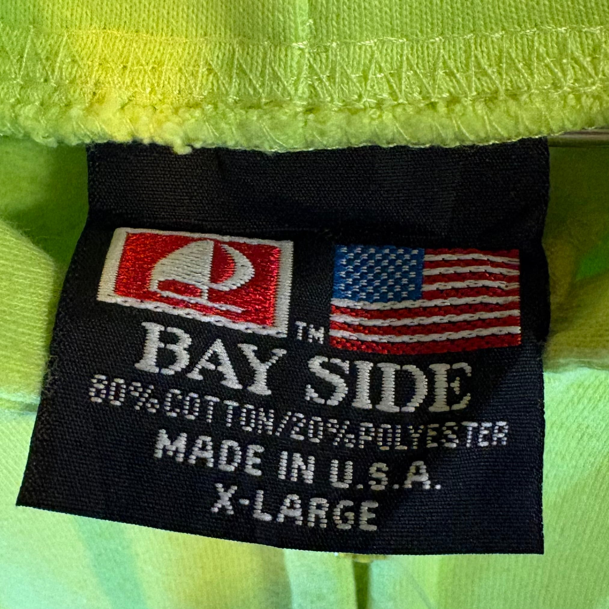 Made in USAの珍しい蛍光色のジップパーカー。大きめなので女性が羽織ってみても。