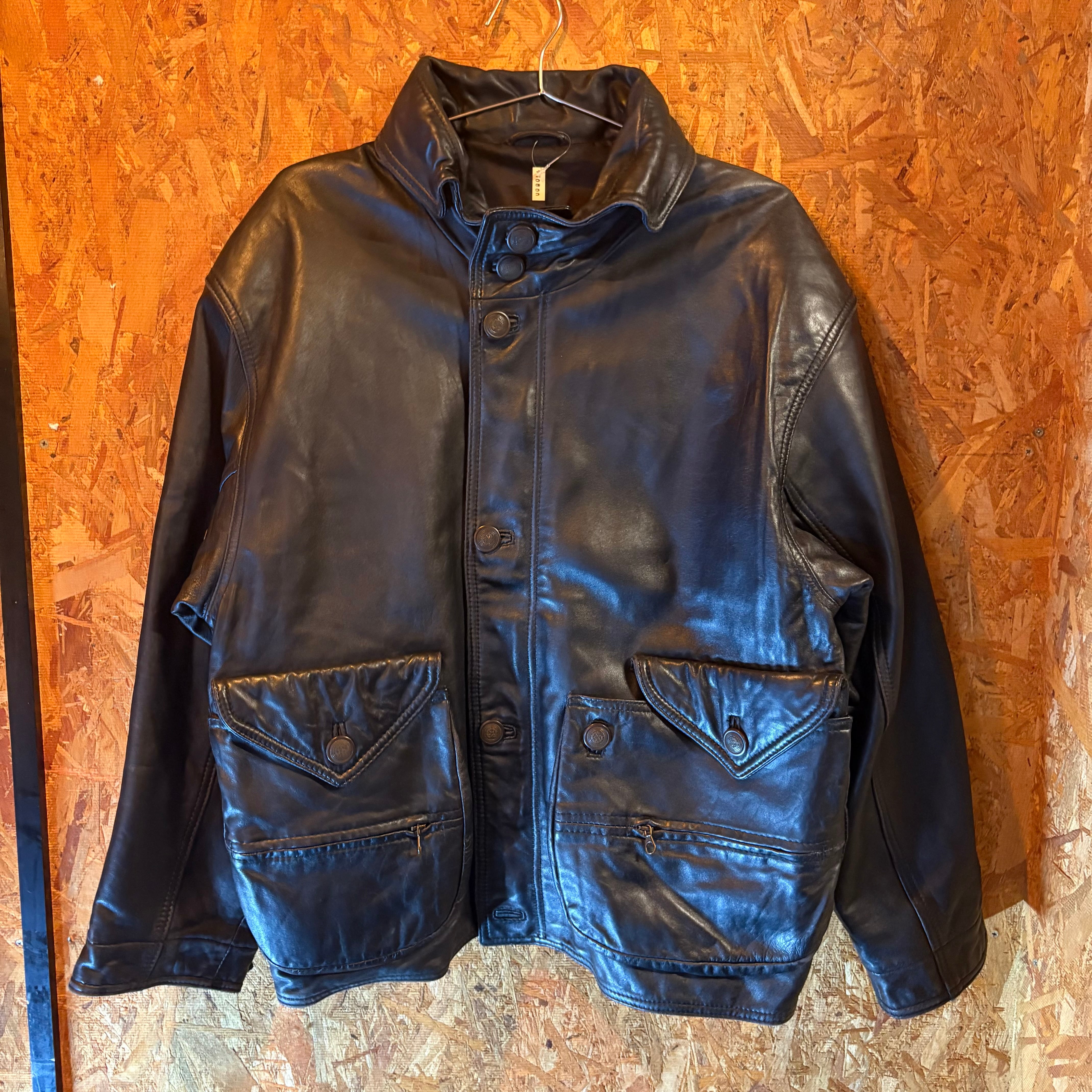 イタリア製のシンプルかつ遊び心があるデザインのレザージャケット。厚みがあるので冬に向けてどうぞ。